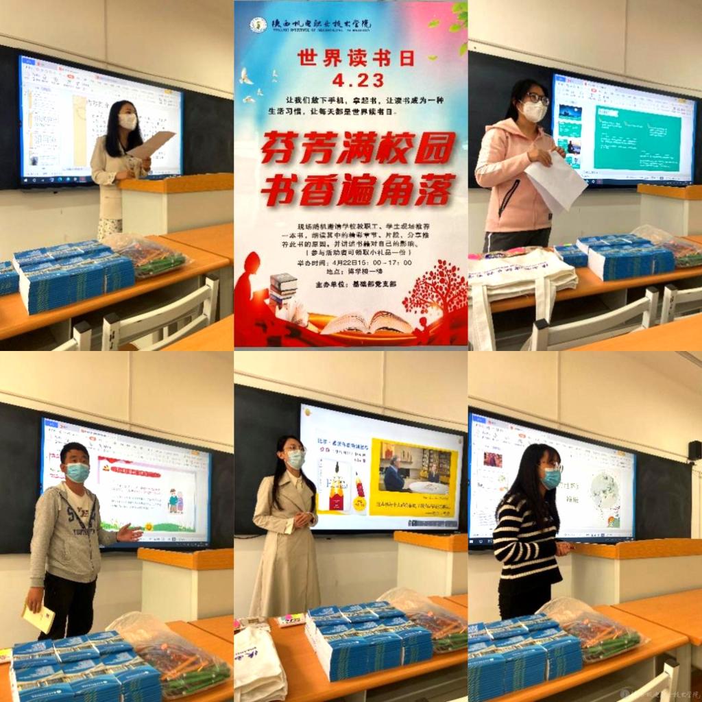 4月23日是第27个世界读书日,基础部党支部蟠龙校区党小组党员教师与同学们相约午后,举办“芬芳满校园 书香遍角落——基础部党支部2022年‘4·23世界读书日’特别活动”。现场,党员教师和同学们从推荐一本好书到分享阅读体悟,用思考的交流碰撞出智慧的火花。