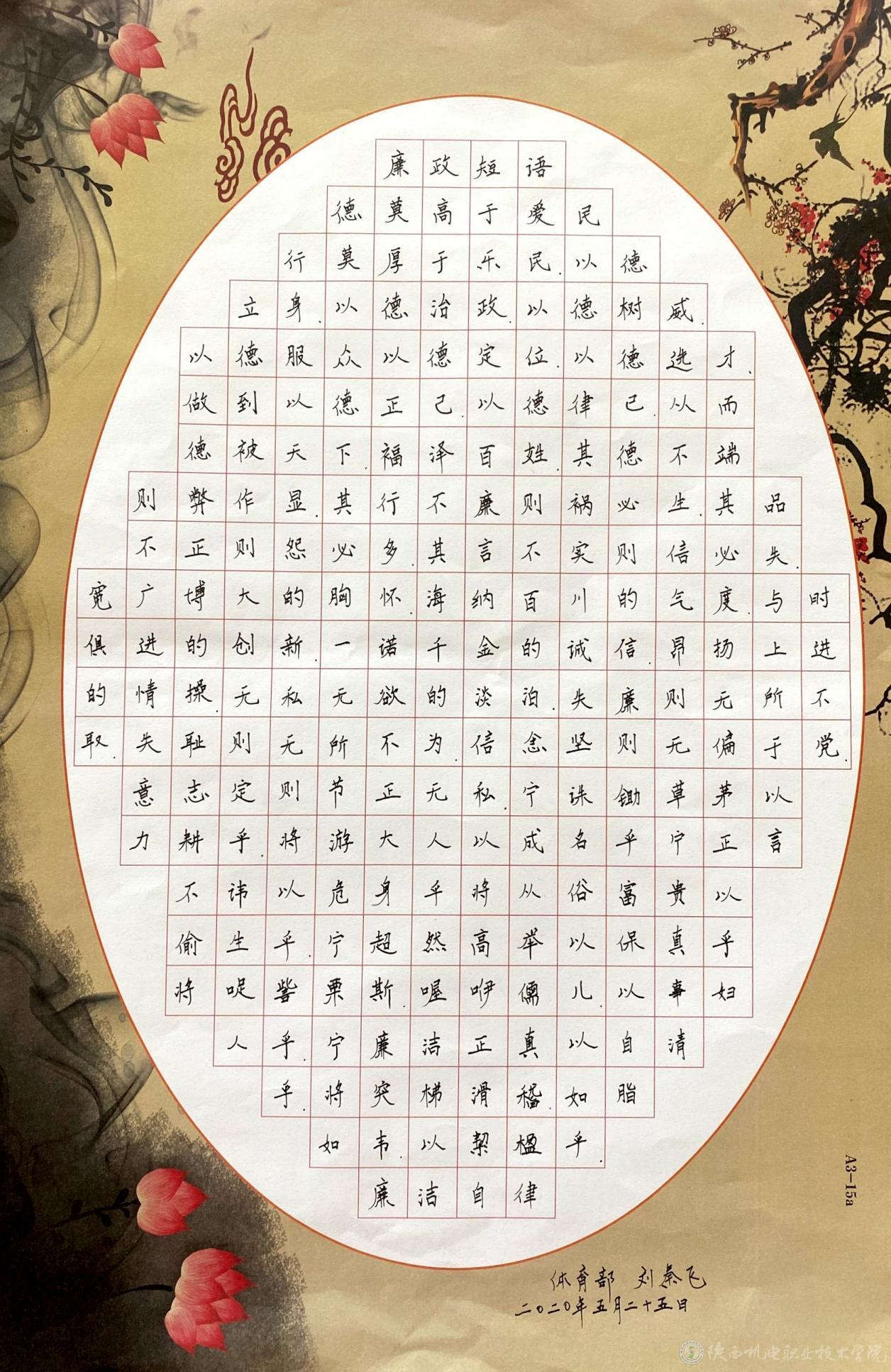 通过笔端的挥毫泼墨,党员教师们能在静心、专心地书写、作画的同时思索廉洁的含义,这本身也是对廉洁的体悟和践行。结合文化艺术形式的廉洁宣传能够有效地弘扬和传播廉洁精神,不仅丰富了支部党员和群众的精神文化生活,同时也有助于积极营造风清气正的廉政文化氛围,使部门全体党员和群众受到一次廉政教育的精神洗礼。